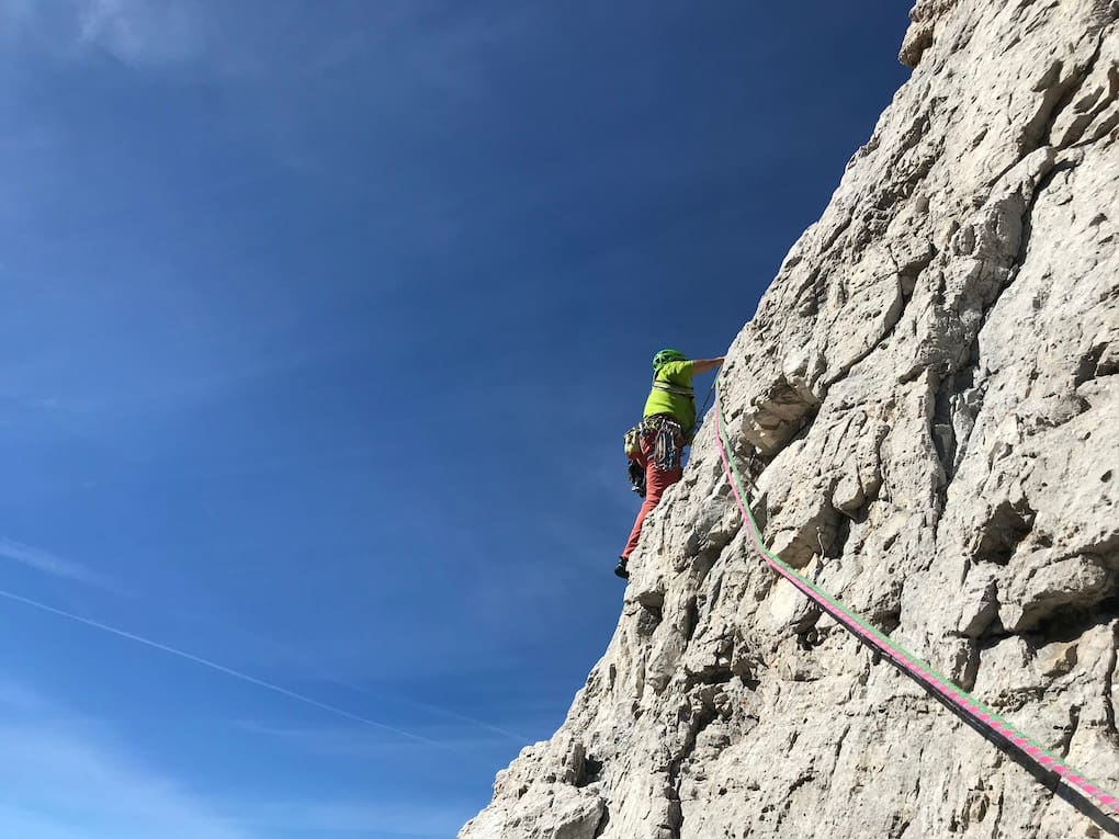2° giorno: Saliamo verso il rifugio Re Alberto alle Torri del Vajolet. Durante il percorso scaleremo un via alla Punta Emma.
